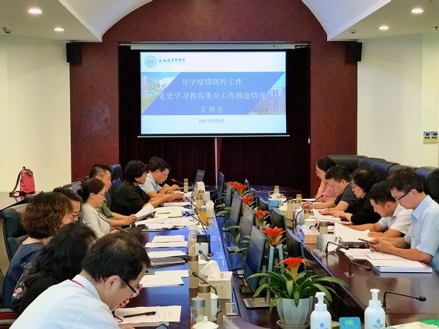 李蔚一行听取了学校开学疫情防控工作和党史学习教育情况汇报,重点了解了学校学习习近平总书记“七一”重要讲话精神、开展组织生活会和“我为群众办实事”的情况。现场,校领导和相关职能部门负责人分别介绍了疫情防控、党史学习教育、“我为群众办实事”实践活动等工作中的一些经验和做法。