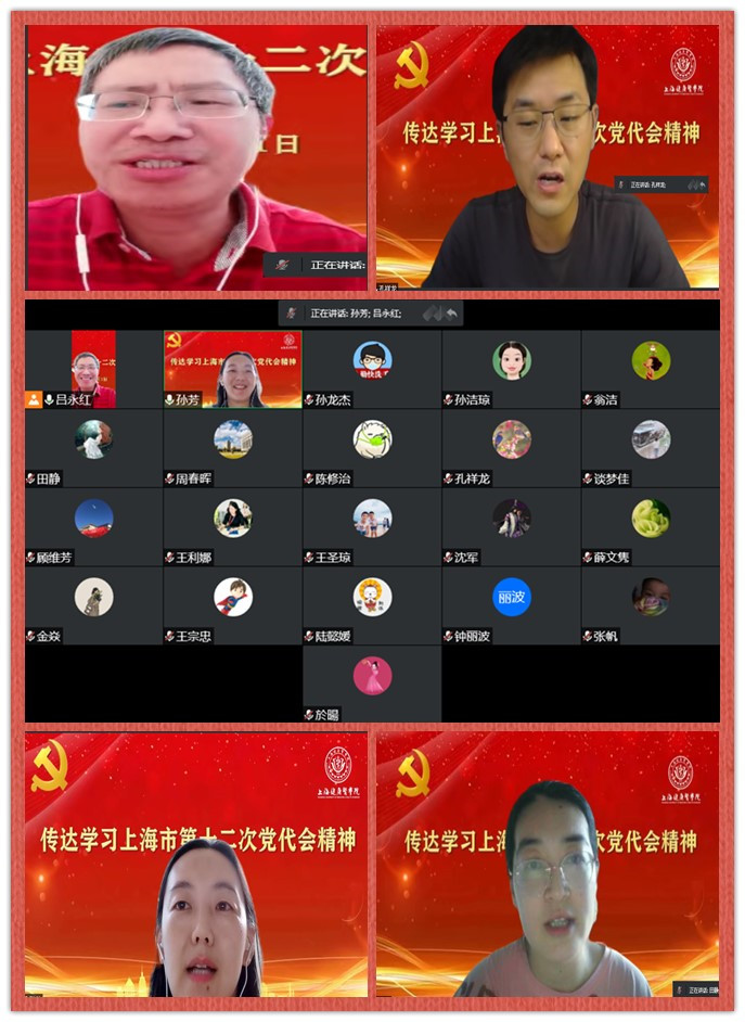 为庆祝中国共产党成立101周年、深入学习上海市第十二次党代会精神,7月1日下午外语国交联合直属党支部围绕“学习上海市第十二次党代会精神,岗位建功庆七一”开展线上主题党日活动。全体党员参加,会议由吕永红同志主持。