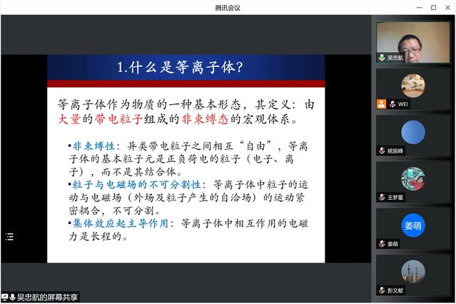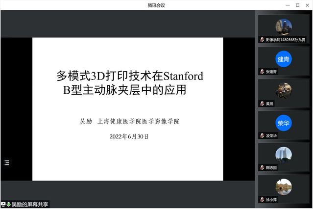 会议伊始,姚教授首先对学院目前的科研情况进行总结,接着由吴励博士和吴忠航博士进行课题分享。吴励博士以《多模式3D打印技术在Stanford B型主动脉夹层中的应用》为题,从研究背景、研究目的、研究方法和研究结果等方面进行了介绍。该课题针对主动脉夹层,对CTA图像进行分割和建模,利用3D打印技术精准显示主动脉结构,该技术能够为临床手术的训练和手术方案的制定提供参考,具有很强的临床应用价值。吴忠航博士则以《低温等离子体技术及其应用》为题,从等离子体概念和基本性质、等离子体源技术以及低温等离子体的应用三个方面进行分享。低温等离子技术无论是在工业应用上还是在医疗器械中都有很广阔的应用前景。
