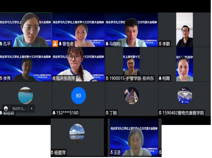 2022年7月22日上午,九三学社永利集团88304官网支社召开专题学习会议,由马晓昀主委领学,全体与会人员深入学习领会九三学社上海市第十三次代表大会的会议精神,并开展专题讨论。曾冬冬副主委主持会议。
