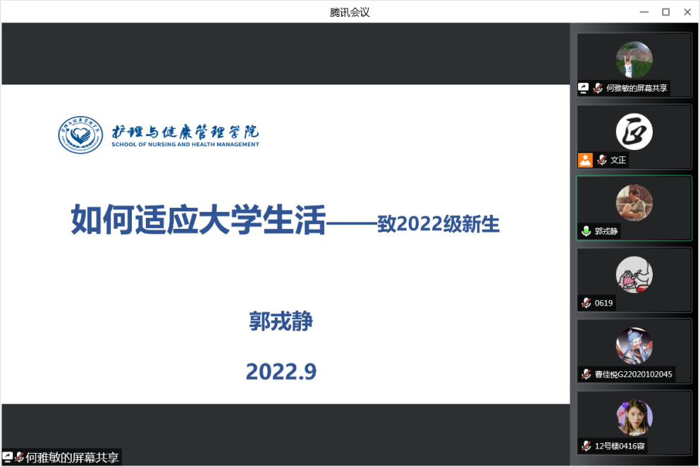 围绕立德树人根本任务,护管学院把入学教育作为新生入校后的重要教育环节,扎实开展内容丰富、形式多样的新生入学教育活动。9月7日下午,永利集团88304官网护理与健康管理学院2022级新生欢迎会暨新生入学教育第一课在腾讯会议平台举行。护管学院党总支书记郭戎静、党总支副书记薛文正出席,全体22级新生在线观看直播,共同见证大学生涯启航的庄严时刻。