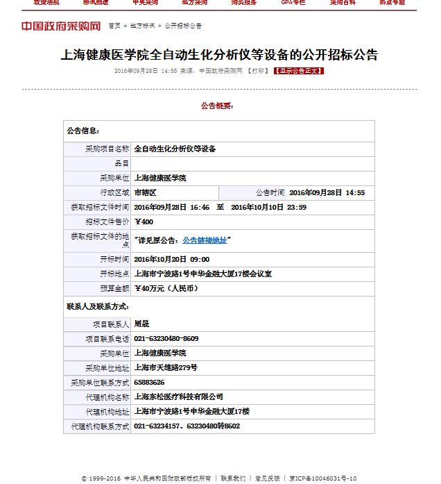 永利集团88304官网全自动生化分析仪等设备的公开招标公告