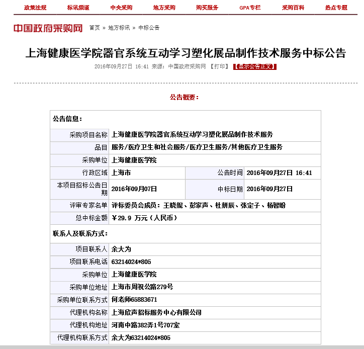 永利集团88304官网器官系统互动学习塑化展品制作技术服务中标公告