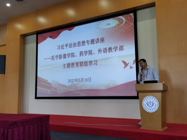 今年5月是我国第三个“民法典宣传月”,为把习近平法治思想贯彻落实到立德树人全过程,切实增强教师法治意识,进一步激发依法治教的活力,5月16日下午,医学影像学院党总支、药学院党总支、外语国交直属党支部在南苑仁影楼A303报告厅开展习近平法治思想联组学习,中央电视台《法律讲堂》节目主讲人、华东政法大学兼职教授李辉律师应邀作“以习近平法治思想的人民性为指引,看《民法典》在人民生活中的适用”专题报告,联组学习由药学院党总支书记詹昌明主持。