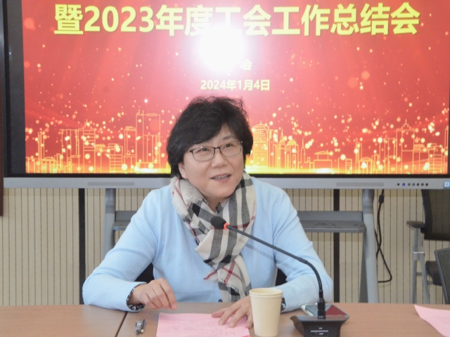 凌文惠代表校工会(妇工委)做2023年工会工作总结及2024年工作展望。她从思想引领树新标杆、服务发展树新形象、发挥工会桥梁纽带作用、品牌创建集智献策、丰富教职工多元化需求及巾帼建功展力量等六个方面回顾了2023年度工作。她表示,2024年,校工会将坚持以习近平新时代中国特色社会主义思想为指导,进一步加强思想政治引领、持续开展“三大文化” “三大工程”工作,树品牌促发展。持续做好“走部门,促协调”。进一步加强工会自身建设,提高履职能力。