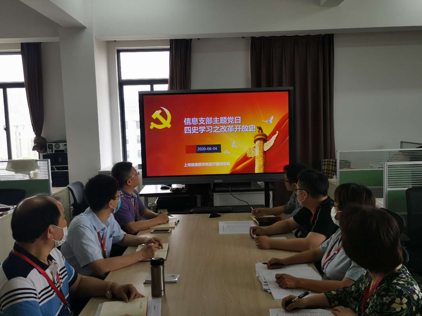 实训教工党支部6月2日下午开展“学四史,守初心,落实立德树人根本任务”主题党日,支部商怀超书记首先围绕党史、新中国史、改革开放史、社会主义发展史深入浅出地解读了新中国经济社会在中国共产党领导下迎来的飞跃性的发展;接着,支部党员集体观看了教育视频《生命之光》并进行了观后感讨论;最后,全部党员深刻认识到,一代代共产党人英勇牺牲、前赴后继,换来了今天的美好生活,我们教师要增强实现“两个一百年”奋斗目标的主动性、积极性、使命感,落实立德树人根本任务,推动学院不断向前发展。