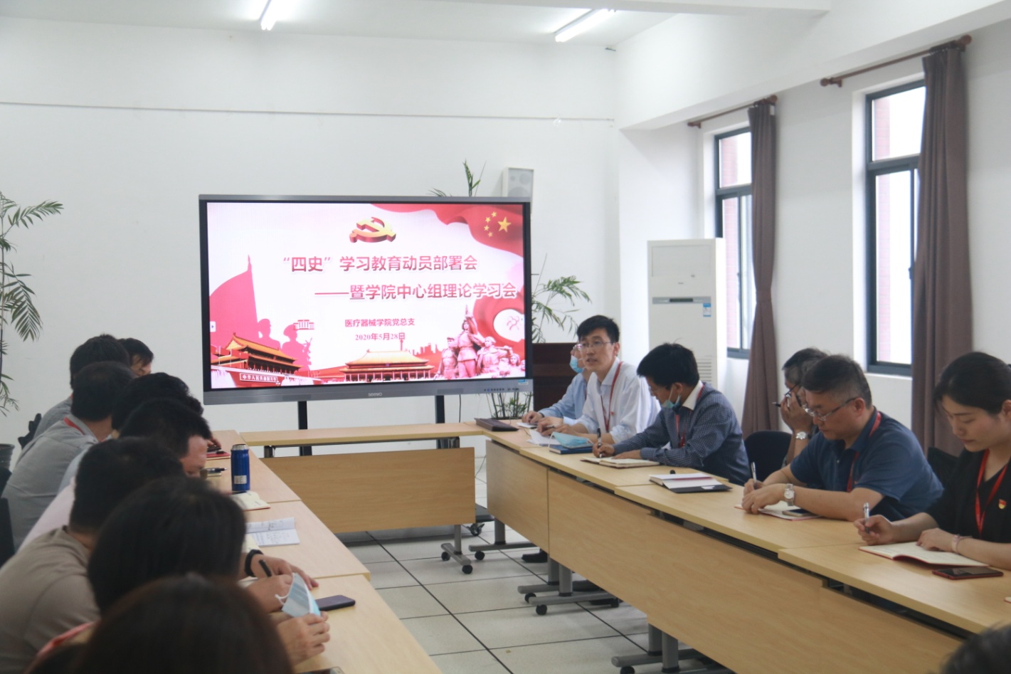 此次动员部署会暨学院中心组理论学习会的开展已吹响“四史”学习教育号角,学院党员将充分利用线上线下学习资源,从“四史”学习中汲取经验和精神力量,坚定理想信念、把稳思想之舵,强化使命担当,在教学改革、专业建设、科学研究、立德树人等方面发挥好先锋模范作用,为学院创新发展做出贡献。(医疗器械学院)