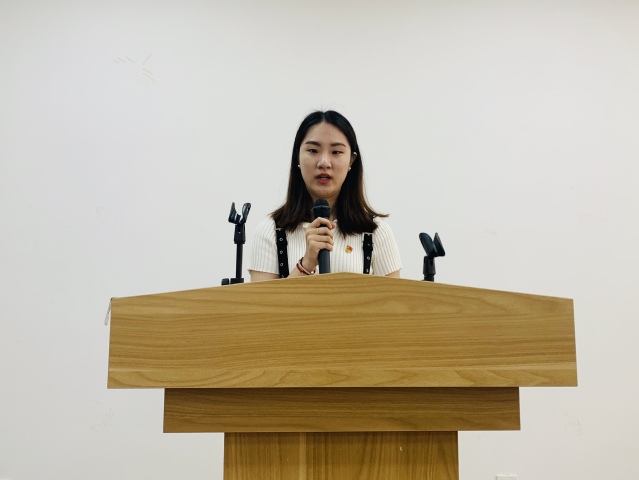 学院两位青年党员何之渊、陆艳梅和入党积极分子徐桢从自身视角谈了新中国的变化,展示了他们眼中的新中国。何之渊从古时的四大发明讲到现在的高铁、共享单车、移动支付、网购“新四大发明”,从《舌尖上的中国》到“胖五”携新火箭新飞船首飞告捷,从派出军舰用最短的速度接索马里亲人回家到北斗导航系统组网成功,作为新青年,我们生逢其时,也应重任在肩。陆艳梅从一个浦东人的视角,讲述了衣食住行在近20年的变化,从轮渡到越江隧道、跨江大桥,从陆家嘴到自由贸易试验区,从烂泥渡路到银城路,这些变化都展现出了浦东新区30年的艰苦奋斗,30年的敢闯敢拼。入党积极分子徐桢从爷爷的电瓶车被盗讲到了小区里停车场建设和管理逐步规范化的历程,从自己家门前那一到夏天就满是水葫芦的河流,讲到了现在生态文明建设成效越来越显著。