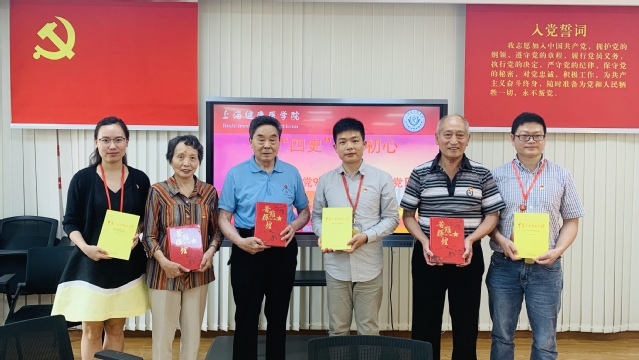 罗山路军休干部支部和医学技术学院学生第一、第二党支部进行了学“四史”书籍互赠,双方互赠了《苦难辉煌》和《中国共产党的九十年》。