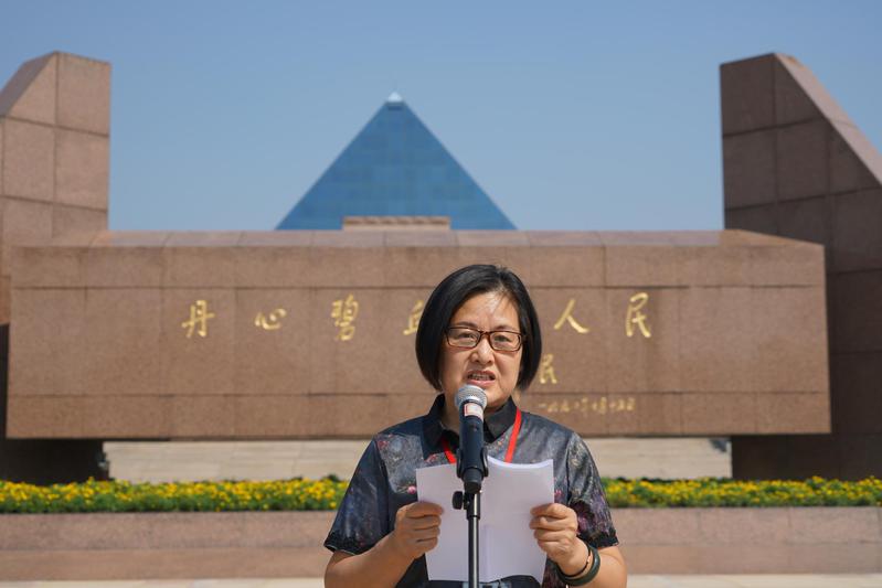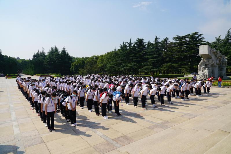 10点整,仪仗队向烈士纪念碑献上花篮,大家怀揣无比崇敬的心情向烈士们三鞠躬,缅怀革命先烈。