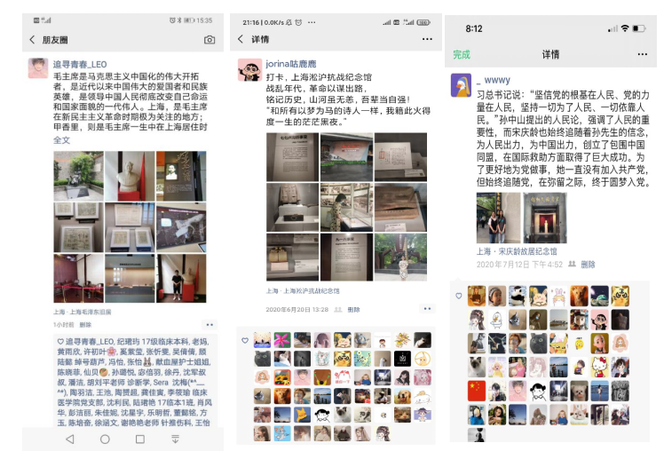 按照学院《关于开展“四史”学习教育“三个一”活动—作品征集的通知》要求,即开展一次红色文化纪念场馆寻访活动、举办一次征文、摄影作品、短视频征集活动、组织一次“四史”学习教育专题交流会。全体教职员工、学生党员积极利用暑假时间,开展红色景点打卡活动,撰写心得体会,拍摄影像作品。本次专题组织生活会就是对暑期“四史”学习教育的一次交流分享。假期里,同志们走访了中共一大会址、四行仓库、上海历史博物馆、中共上海地下组织斗争史陈列馆、上海宋庆龄故居、《布尔塞维克》编辑部旧址、中共中央上海局机关旧址、中共中央组织部干部秘训班旧址、愚园路历史名人墙、刘长胜故居、毛泽东旧居陈列馆、徐光启纪念馆延安杨家岭、宝塔山等著名红色教育基地。