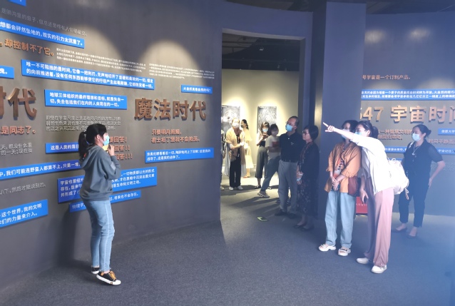 上午,同志们来到了位于浦东陆家嘴的上海中心“三体”时空沉浸展。《三体》一书是由著名科幻作家刘慈欣创作,获得了科幻界最高奖项“雨果奖”。由此,世界科幻史上首次刻下了中国科幻的名字。“三体”时空沉浸展通过高科技手段,充分运用光影效果,再现了书中描绘的生存场景。在讲解员的带领下,同志们依次沉浸式体验了三体“水滴”、三体世界、“三日临空”、浩瀚宇宙等大型“名场面”,仿佛如临其境,全方位感受了高科技带来的震撼效果,也感受到上海现代化城市发展的魅力。