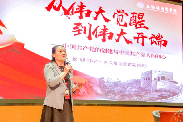 习近平总书记指出:历史是最好的教科书,也是最好的清醒剂。为深入贯彻落实市教卫工作党委《关于在大中小学生中深入开展党史、新中国史、改革开放史、社会主义发展史学习教育的通知》要求,9月14日,永利官网学工部通过线上线下相结合的形式,在新南苑800人报告厅召开全校学生“四史”学习教育线下学习动员大会,并举办首场“星火相传”四史学习教育进校园专题讲座。中共一大会址纪念馆主持工作副馆长、市委讲师团“四史”专家宣讲团成员、上海大学兼职教授徐明,应邀为永利官网学生作《从伟大觉醒到伟大开端——中国共产党的创建与中国共产党人的初心》专题讲座。