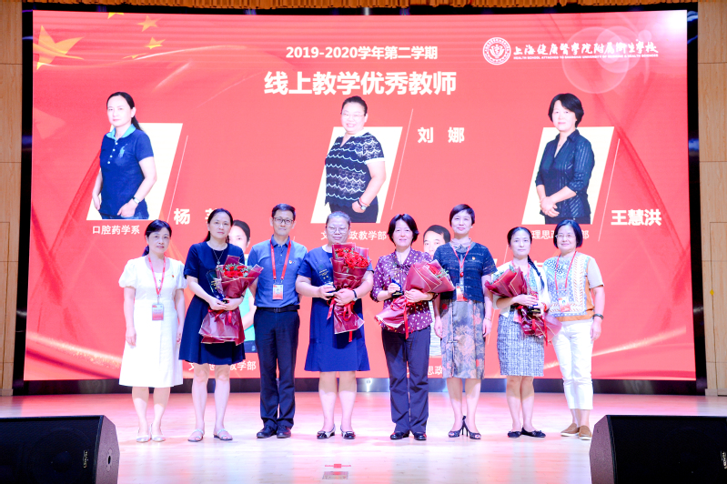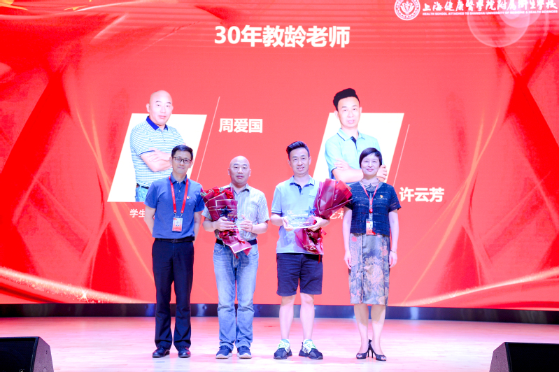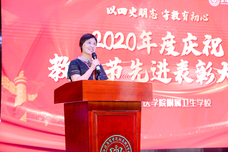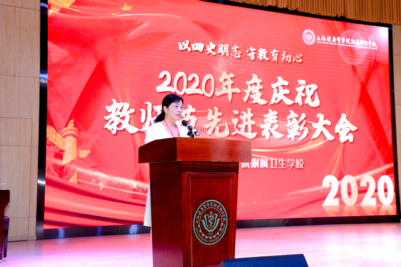 表彰会上,朱文娟副书记介绍了2019年加入卫校大家庭的14名教师,他们的加入是永利官网发展的新源泉,代表着学校发展的新鲜血液,也将为走出一条具有永利官网专业特色、旗帜鲜明的道路贡献新的力量。随后18护理中本2班的沈晓怡同学值此之际向全校老师们表达了诚挚的祝贺与深深的感谢,并表示绝不辜负老师们的谆谆教诲与殷殷期望。学校发展的每一步,都倾注了广大教师的心血。而后,钱艳书记宣读了30年教龄教师名单和2019-2020学年各类先进教师获奖名单。全体校领导分别为30年教龄教师和先进教师颁奖。随后,先进教师施卫国老师作为教师代表发言。施老师谦虚的表示:他只是一名普通的人民教师,他所做的都是在尽全力做好自己的工作,为的是要对学生负责、对家长负责、对学校负责、更是对教师这个身份负责。在今后的工作中,他会一如既往地把全部的爱奉献给教育事业,奉献给他深爱的孩子们!
