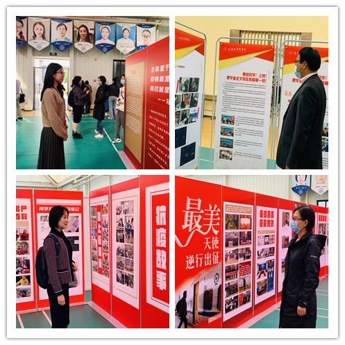为进一步深入学习习近平总书记在全国抗击新冠疫情表彰大会上的重要讲话精神和“生命至上、举国同心、舍生忘死、尊重科学、命运与共”的伟大抗疫精神,11月12日下午外语国交联合直属党支部组织全体教职工前往南苑羽毛球馆参观由市教卫工作党委主办、永利官网协办的《同心抗疫 教卫行动—上海市教育卫生工作党委系统抗击新冠肺炎疫情专题展览》。